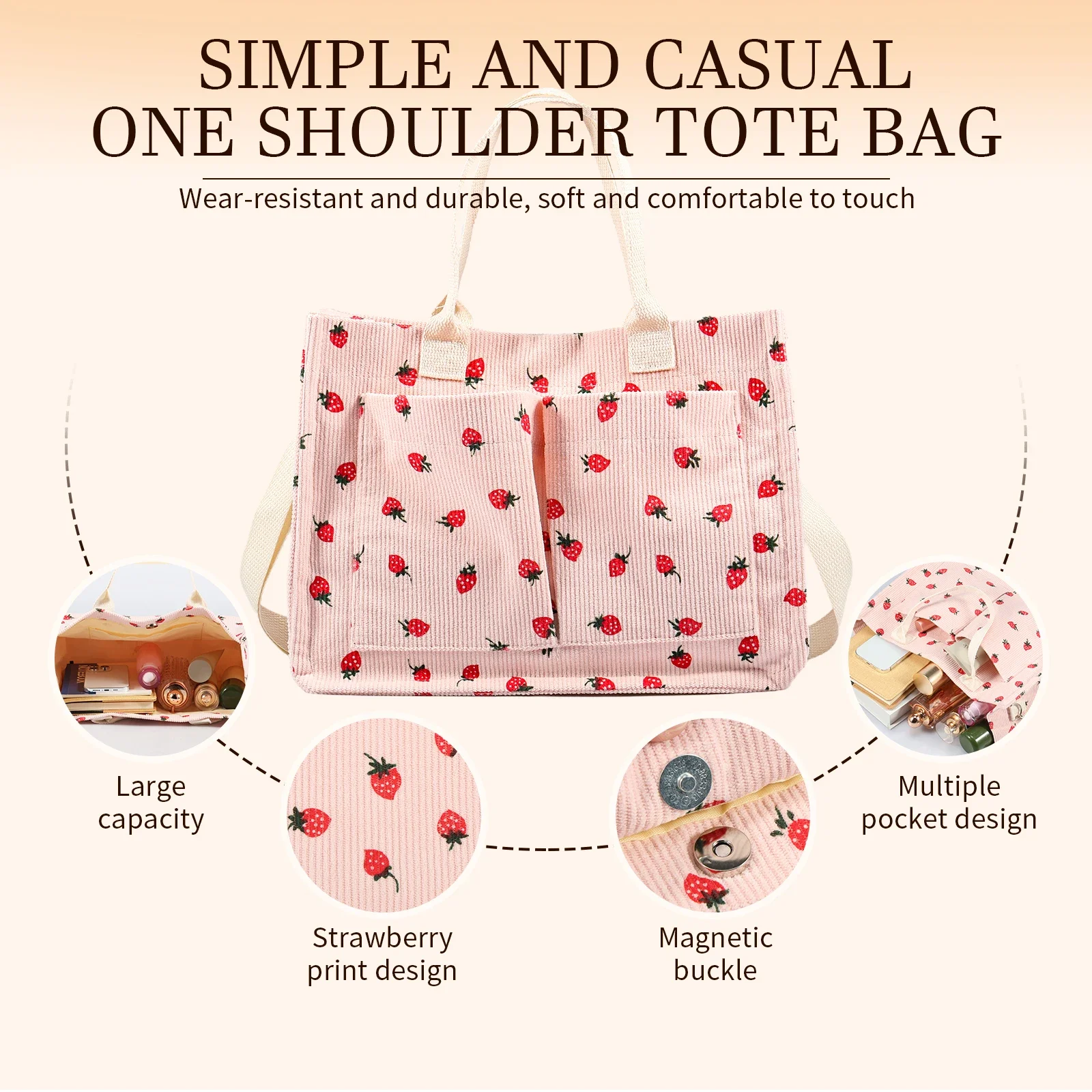 Unique Design: The appearance of this handbag with strawberry print design, cute and simple, and equipped with a shoulder strap, adjustable length and removable, the design is unique and portable, fashionable and practical coexist